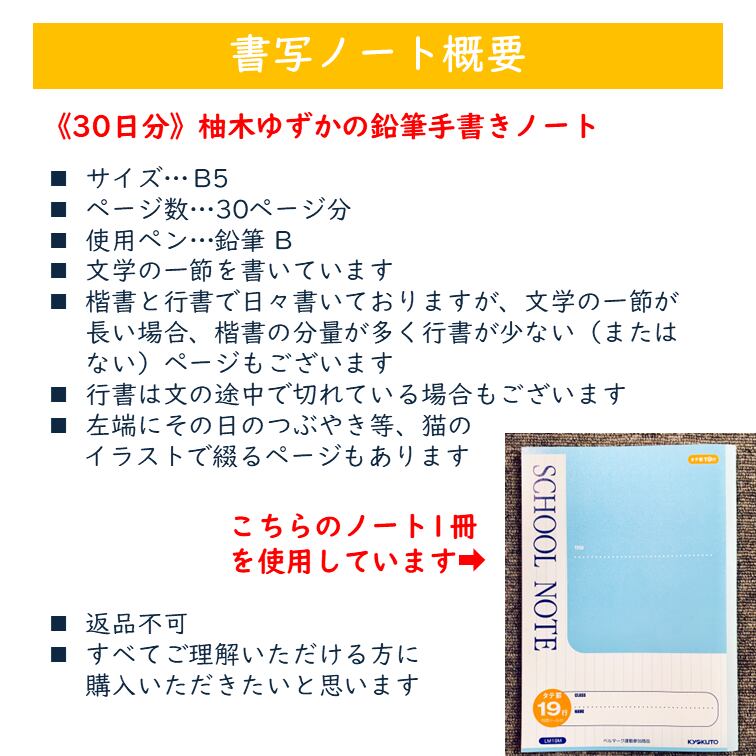 柚木ゆずかの直筆文字が30ページに詰まったB5ノート1冊